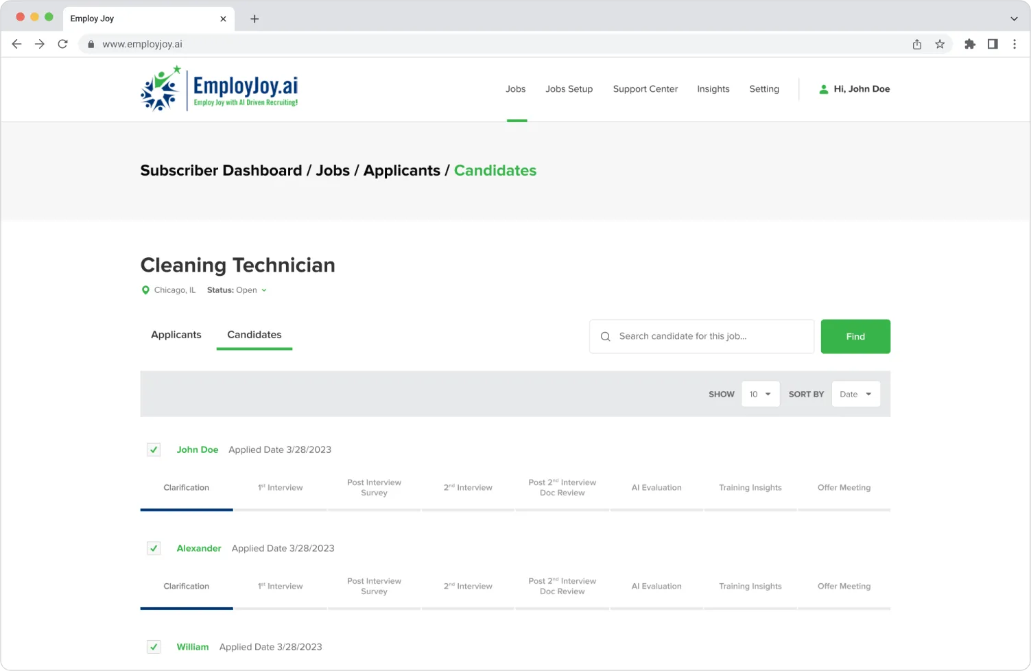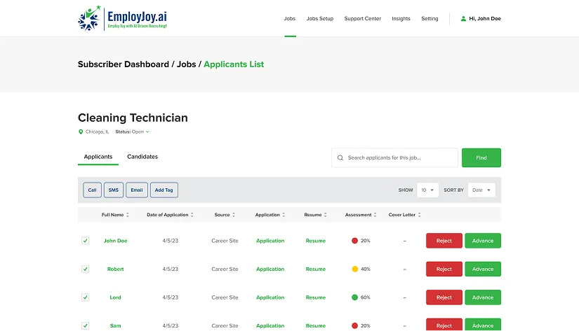CGP Systems designed a role-and-workflow model tailored to cleaning operations — from intake through evaluation — so teams can manage applicants in the context of crew-based, shift-based work. This vertical focus is aligned with EmployJoy’s cleaning-industry launch and public positioning.